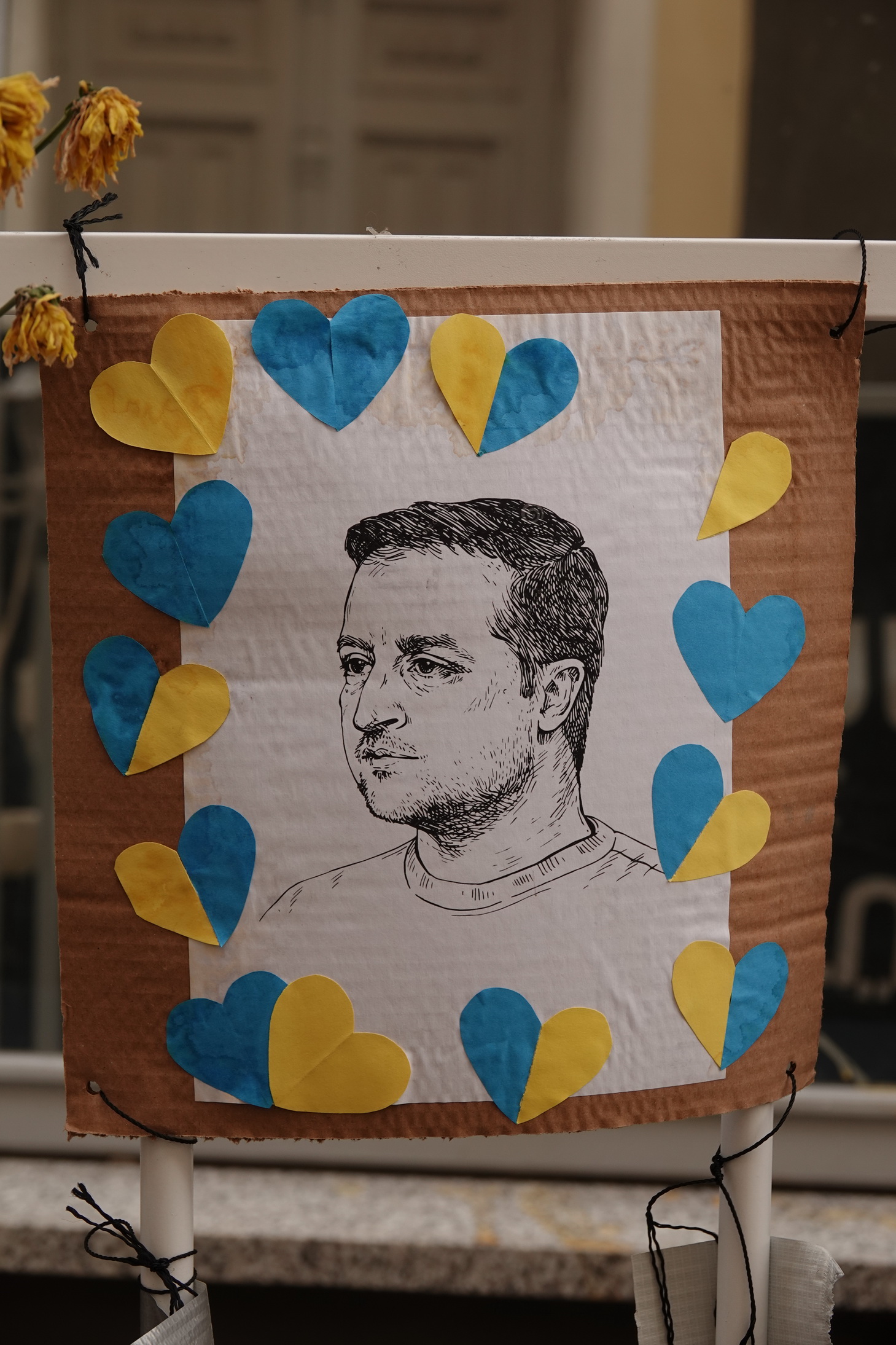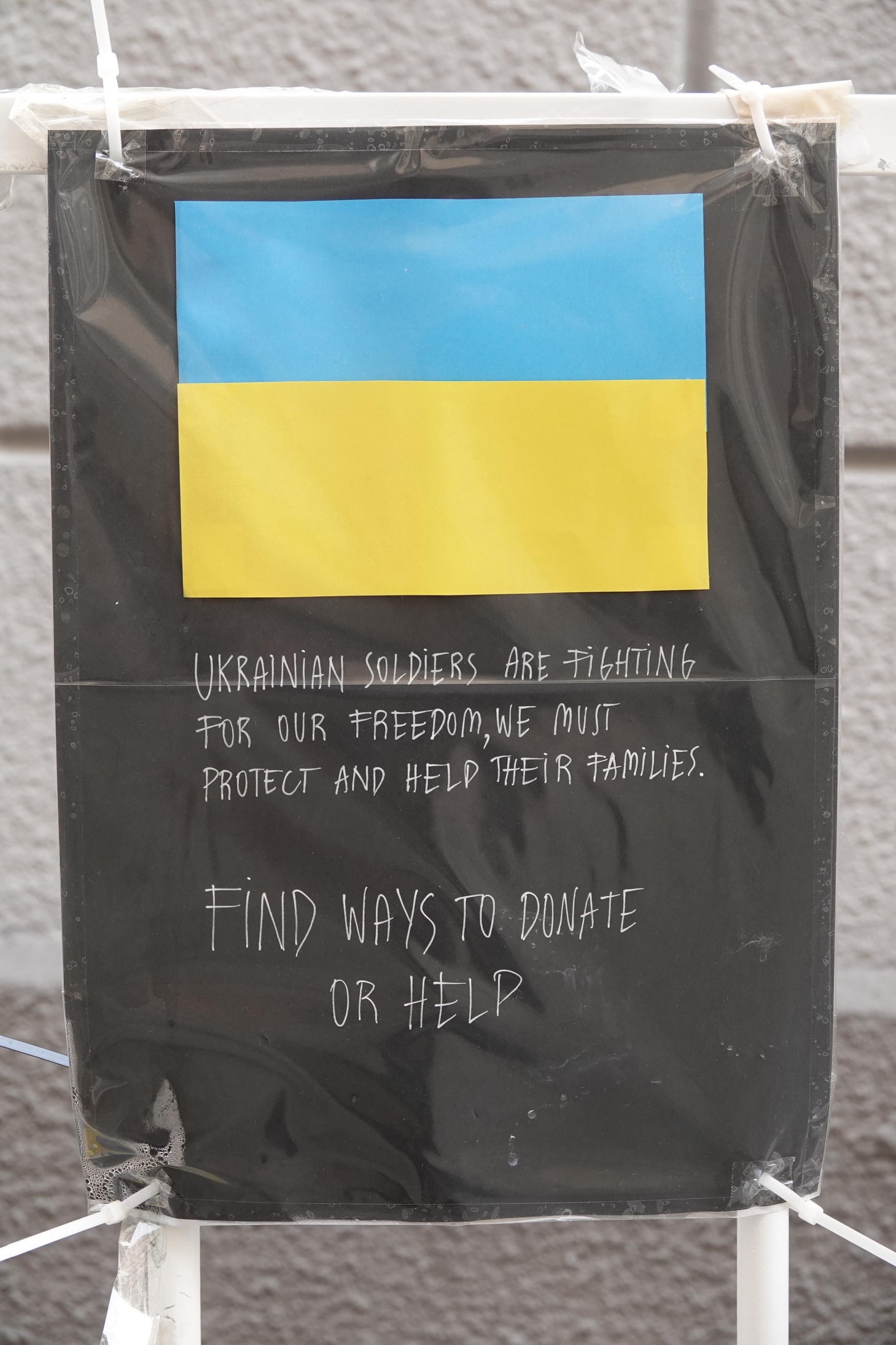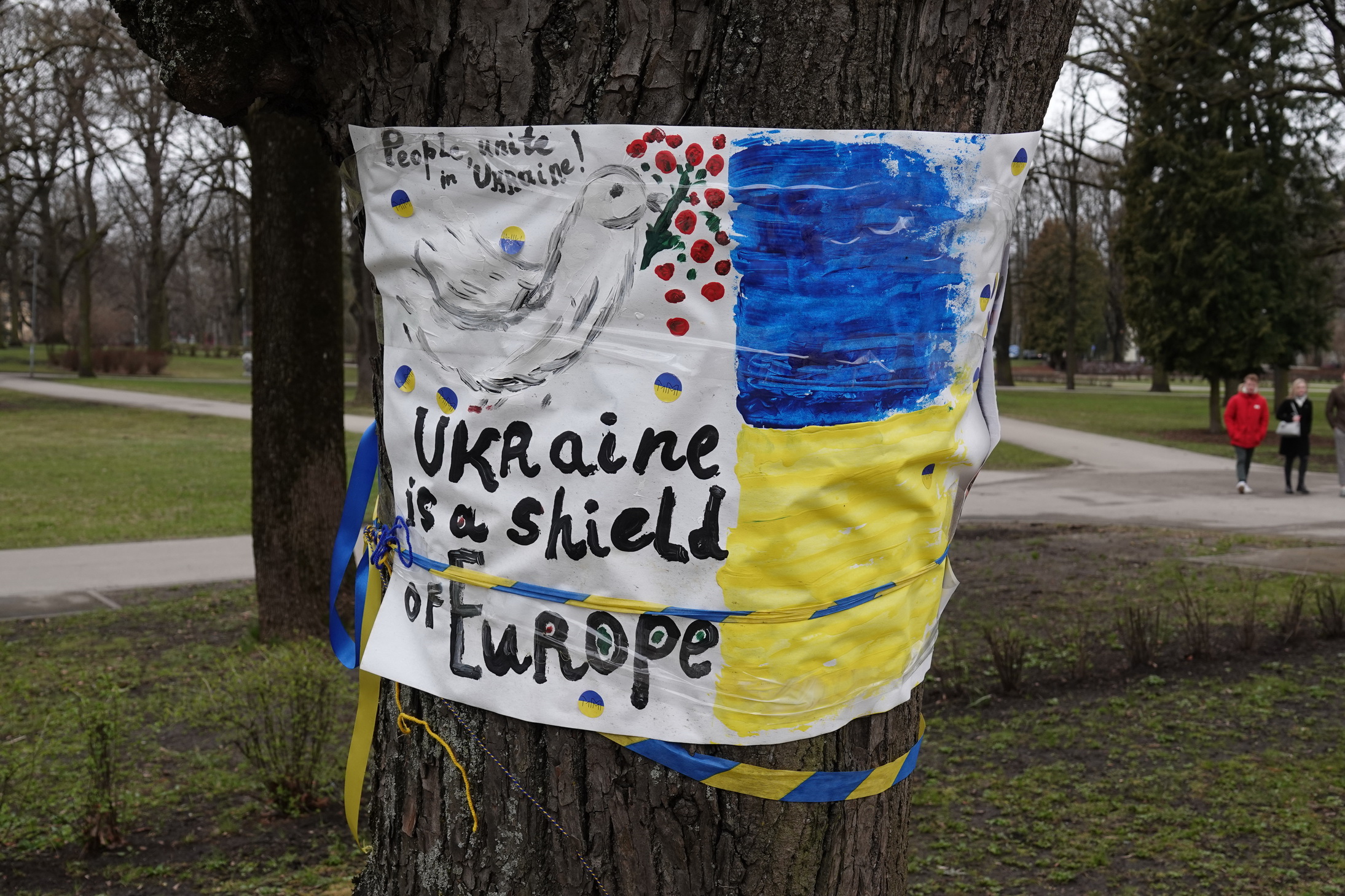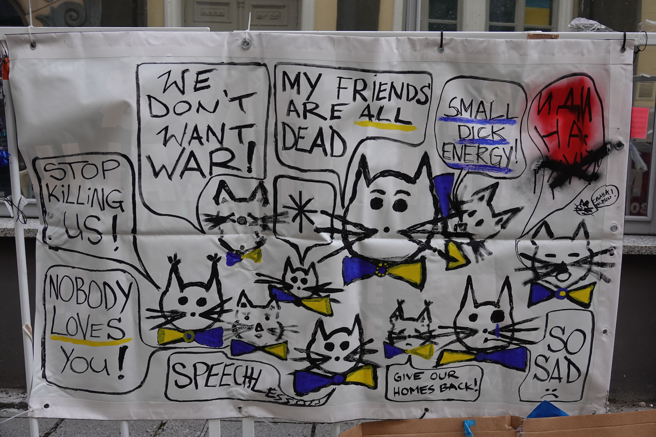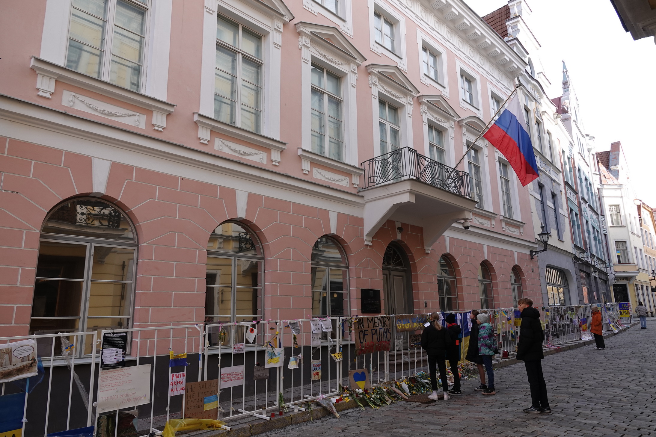 … mon voyage à Riga et à Tallinn s’est vraiment bien passé. Mais la guerre est bien là, y compris face à l’ambassade de Russie de Riga, avec cette image géante d’un Poutine semeur de mort… D’autre part, tous les transports en commun des pays baltes arborent plusieurs drapeaux ukrainiens sur chacun de leurs tramways, trolleybus et bus ! Et partout dans les villes, des panneaux géants qui proclament la solidarité des peuples baltes avec l’Ukraine.