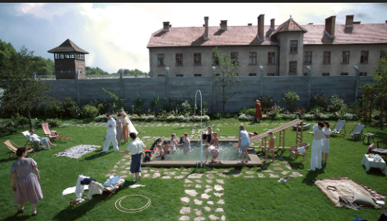 La vie de famille continue, avec des enfants bien pris en charge, des domestiques instruits et des épouses bavardes. Elles discutent d’une jolie robe récupérée chez une « petite juive », ce qui trouble la mère d’Hedwige qui se souvient d’avoir travaillé autrefois pour une femme juive présente dans le camp, à seulement quelques centaines de mètres de là, dans le magnifique jardin.