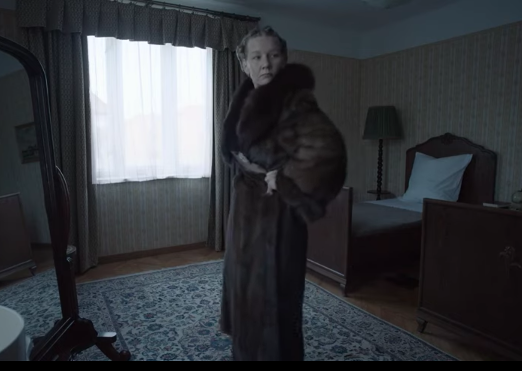 Malgré les cris et les coups de feu constants provenant de l’autre côté du mur, ils y sont habitués. Lorsqu’un train passe en transportant des Juifs, un colis arrive à la maison avec des bas appartenant probablement aux occupants assassinés du train. Dans une autre scène, Hedwige reçoit un manteau de fourrure.