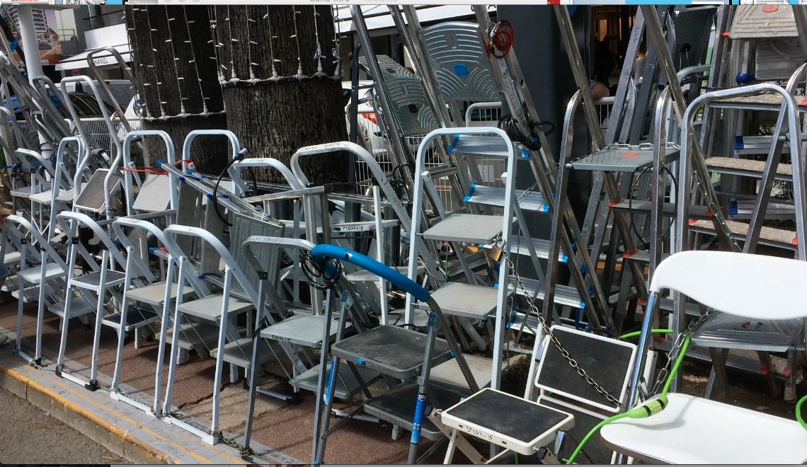 Mấy ngày trước ngày khai mạc, 19 h30, ngày 14 tháng 5 lúc xuất hiện các tài tử nổi tiếng khắp thế giới trên thảm đỏ, dân chúng vùng Cannes đem ghế và thang dặt trước thềm vào Palais du Festival, bên kia đường, thay phiên nhau giữ chỗ trong mấy ngày liền. Các nhà nhiếp ảnh quay phim không chính thức, mỗi người một cái thang bằng nhôm thay phiên nhau ngày đêm giữ chỗ.