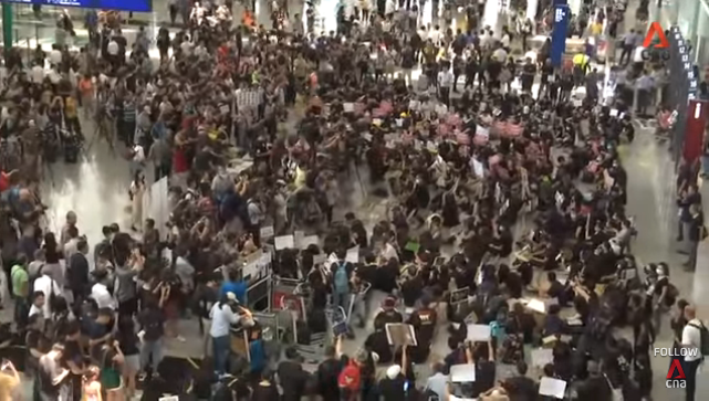 Người biểu tình tràn vào Sân bay quốc tế Hồng Kông (Ảnh chụp màn hình)