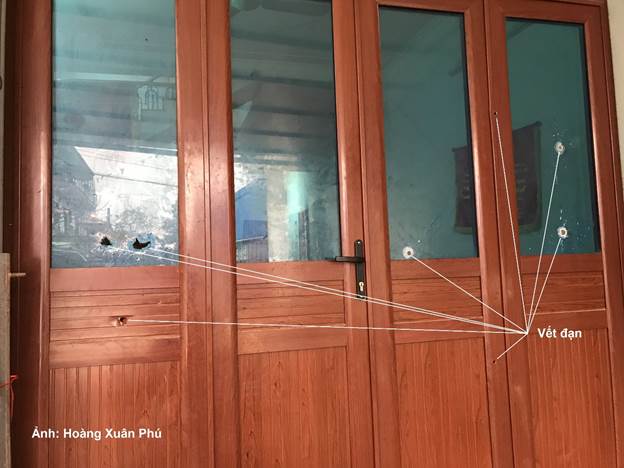 | Ảnh 2: Vết tích thi hành công vụ trên cửa nhà cụ Lê Đình Kình |