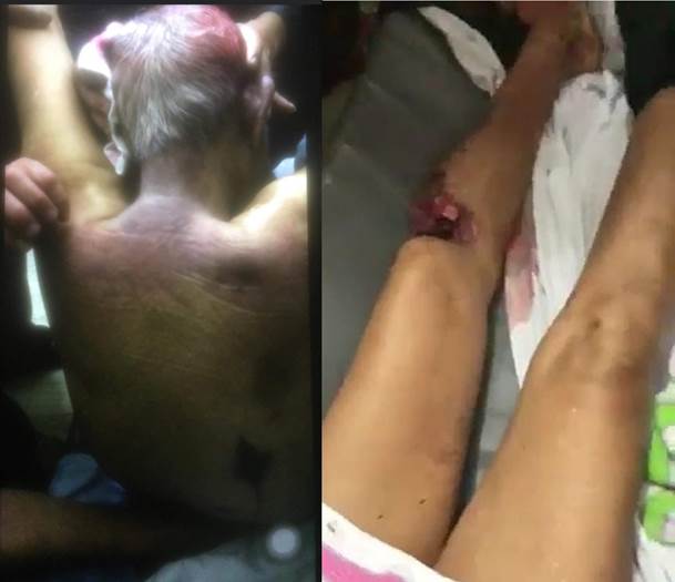 | Ảnh 6: Dấu tích tra tấn sau gáy và lưng cụ Kình | Ảnh 7: Đầu gối cụ Kình |
