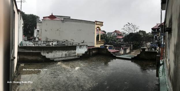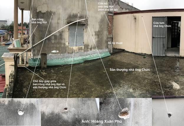 | Ảnh 23: Sân thượng nhà ông Chức, hố kỹ thuật và cửa sổ nhà ông Hợi với ba người lấp ló |