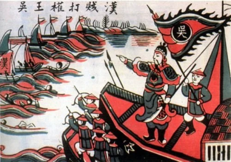 Trận đánh trên sông Bạch Đằng. (Tranh dân gian: chiến thắng sông Bạch Đằng lần thứ nhất)