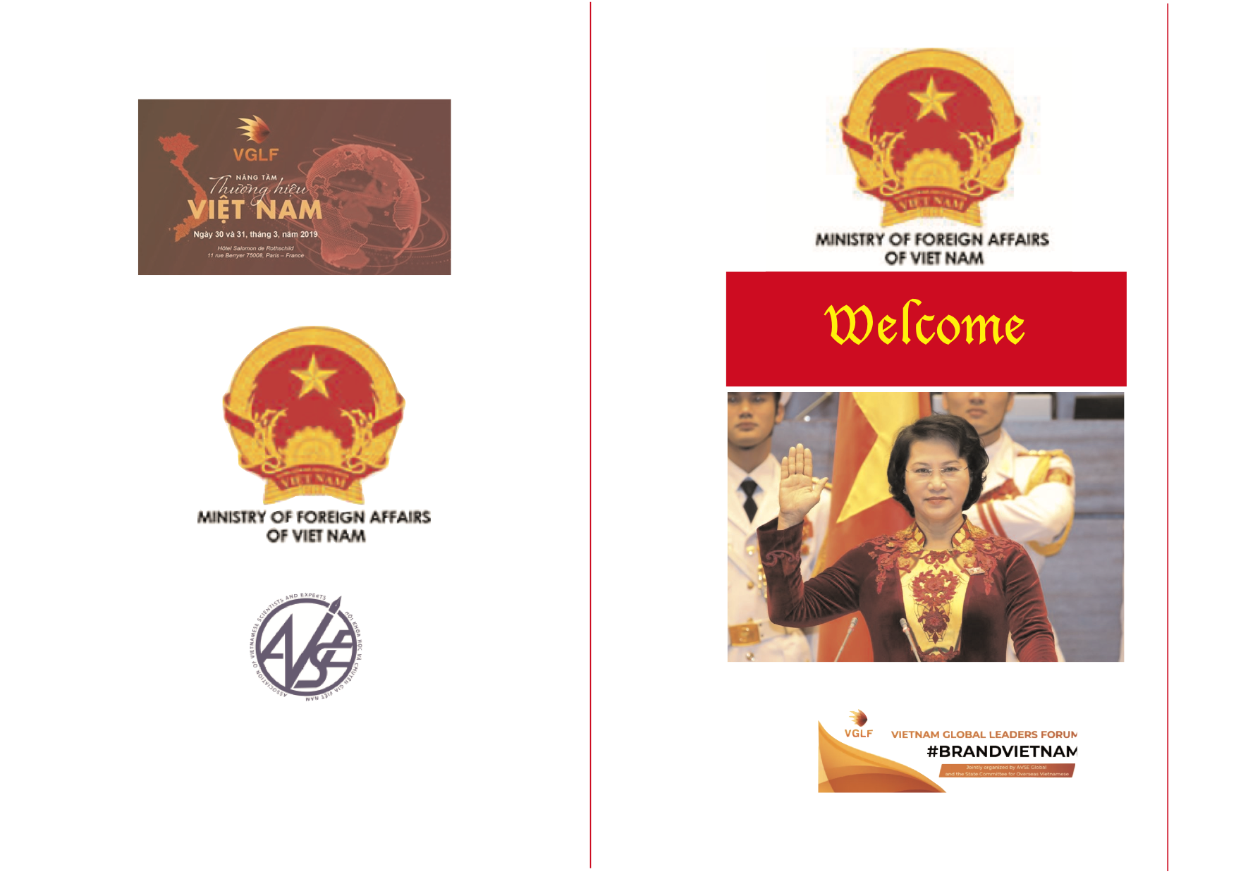 Trang bìa được trình bày như sau : Logo Bộ Ngoại giao trên đầu trang, chữ WELCOME ở giữa, dưới có ảnh to tướng bà Chủ tịch Quốc hội Nguyễn Thị Kim Ngân đang nghiêm trọng giơ tay tuyên thệ.