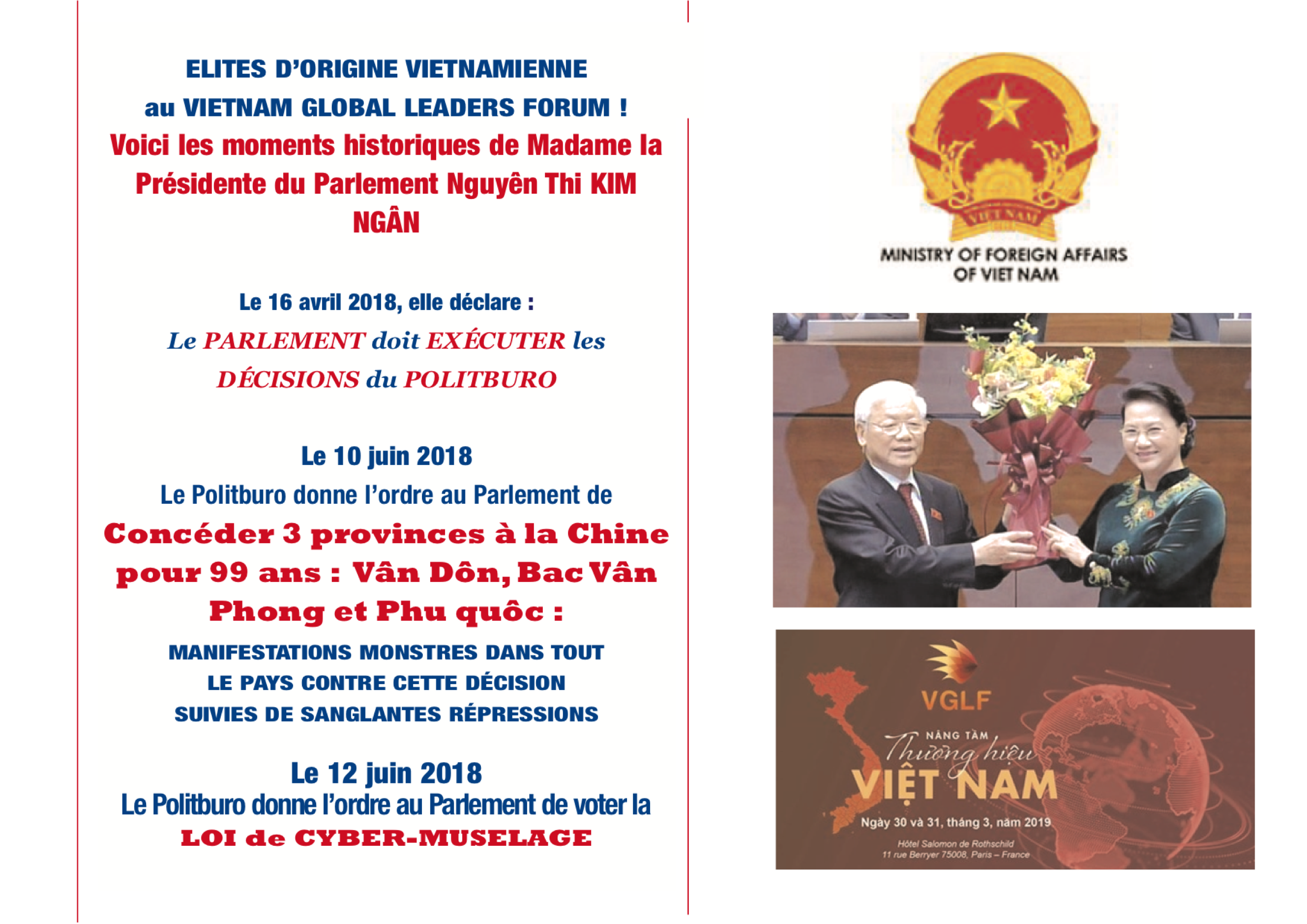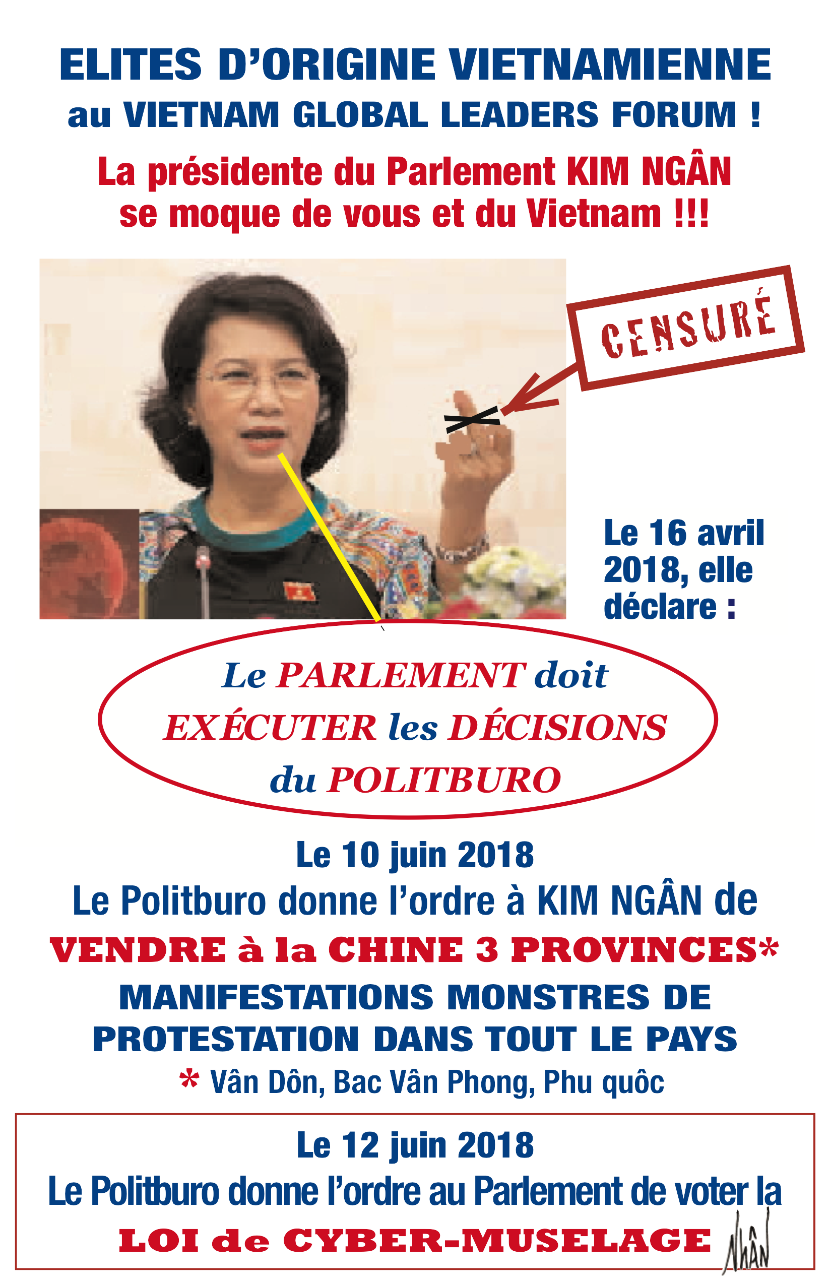 Song song, hành động để chính trường Pháp, dư luận và những khách mời dự Forum « người gốc Việt thành đạt và xuất sắc » đã được Kim Ngân tuyển biết rõ sự thực về con người và hành động của Chủ tịch Quốc hội CSVN.