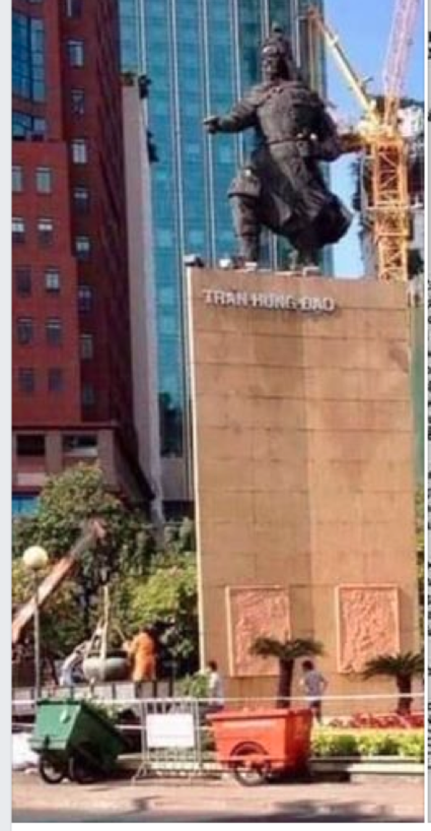 Photo : Tượng đài Trần Hưng Đạo. Lư hương đã bị gỡ vì Trần Hưng Đạo đã đại phá quân xâm lược Tàu